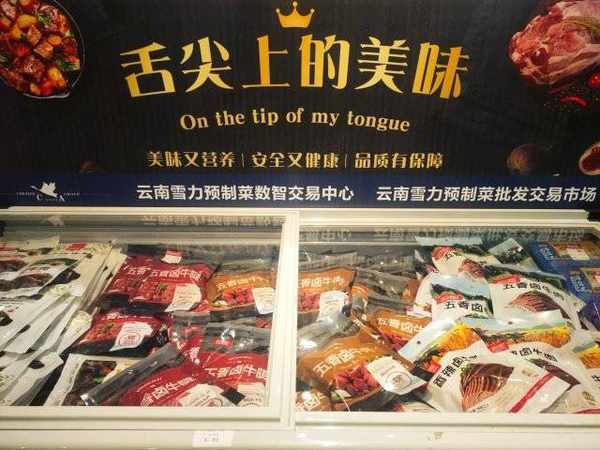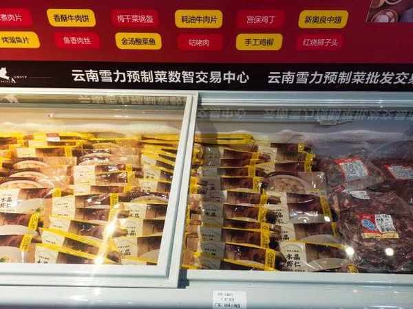 当天,云南首个专业预制菜批发交易市场——云南雪力预制菜批发交易市场开放。走进其中,预制肉类、菌菇类、烧烤类、家常菜类、面点调料等十分多样,企业代表、市民穿梭其中,或洽谈合作,或试吃购物。