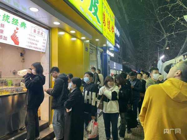 街道旁的各类特色小吃摊前排起长队(央广网记者 彭华 摄)