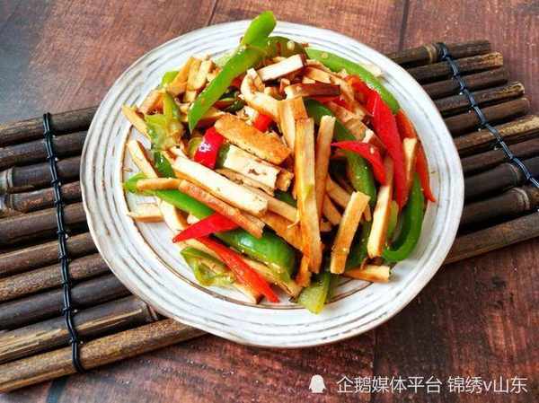 1.豆干切成条,青椒选择皮皱的,相对没有这么辣;
