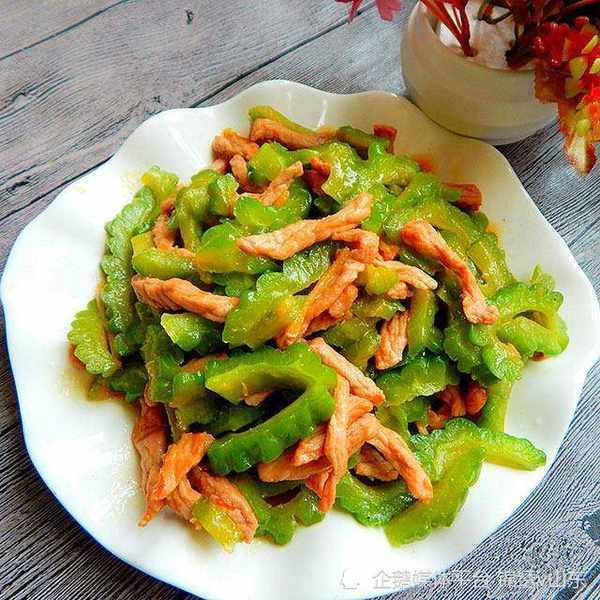 1.苦瓜切片,红椒、姜、瘦肉分别切丝。