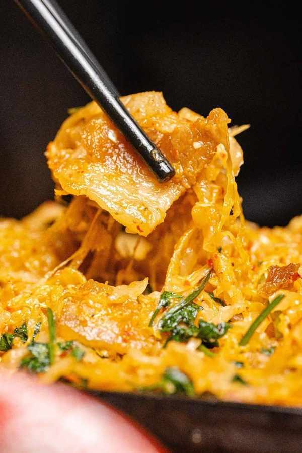 看起来平平无奇,吃到嘴里惊艳所有人的烧烤CP非他莫属,放在烧热的铁板上酸菜香味被迅速激发,又混合了五花肉的油脂,那味道勾的人狂咽口水,心里直痒痒。