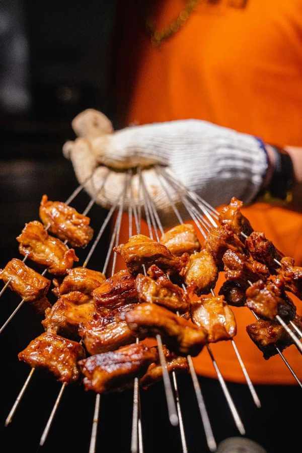 不管天南地北,重口味是宵夜的统一气质,店里的BGM总是放着老歌,一下子把人拉回80/90年代,轻松自在的店内氛围更是吸引过路人,大家在这恣意闲聊,畅快喝酒。