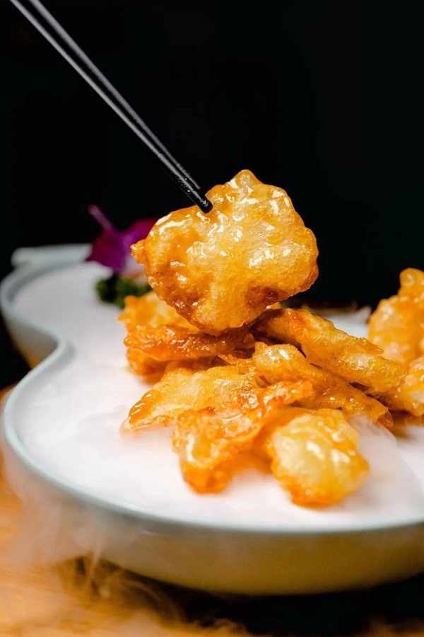 东北人年夜饭桌上必备的一道菜,从里脊肉的厚度到挂浆的程度都得精准把控,才能做出金黄脆薄的锅包肉。酸甜的酱汁中和油腻,嘎嘣脆嫩。