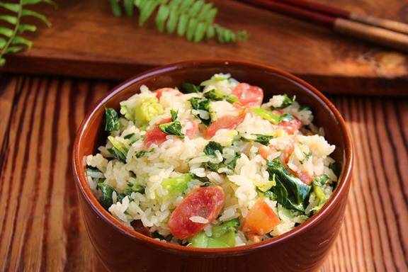 这是一碗惹味的饭,在我的记忆深处从没忘记过,我们本地人到了冬天家家户户都会腌咸肉除了备着为了来年春天的腌笃鲜,还有就是做这样的一碗菜饭。青菜,咸肉加上大米一锅出,我家儿子喜欢有香肠的菜饭,所有每次都会加香肠一起烹饪,真的是太香了,每次都是吃到撑才肯罢休,为了控制自己不多吃,所以差不多每隔10天才敢烧一顿。