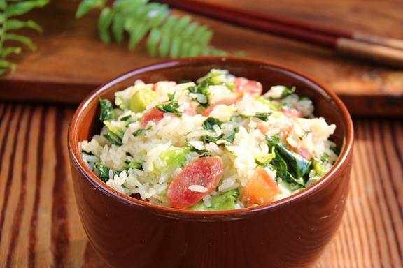 有人问我,为什么每次用青菜烧菜饭到最后饭好了,青菜也都变黄了无食欲。香儿要无私的分享秘籍,喜欢的就收着,尝试做做,做的好吃了就OK了,也不比感谢我。因为青菜和其它绿叶蔬菜一样,含有大量的维生素c,烧菜饭主要有一个焖煮过程,所以呢青菜要分开加入的,这样才能保持碧绿的色泽,还能减少维生素c的流失,就这样简单,我们做饭也可以做到色香味俱全哦。