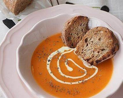 6再用搅拌棒或搅拌机搅拌所有锅里的蔬菜即可,食用时可以按照喜好加点奶油,牛奶等,还可以放一些干的莳萝叶等香草叶