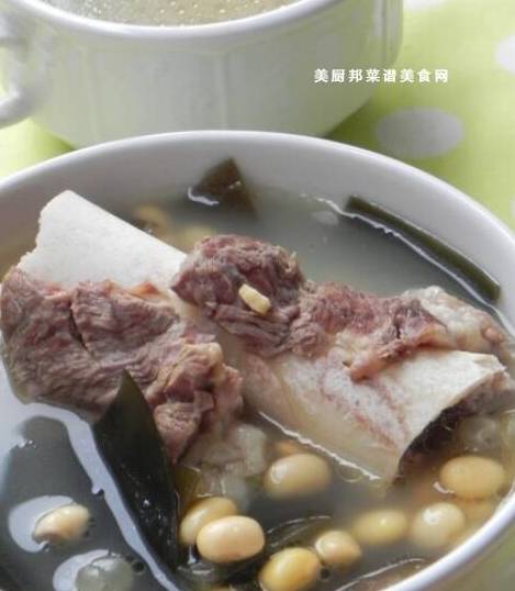 8..煨两个小时后,看到同子骨已经熟透,开始加入海带,同时加入盐。9.等海带煨熟后盛盘