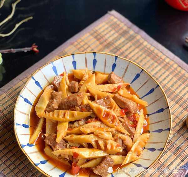 食材:春笋适量、韭菜1把、猪肉1块、姜1块、生抽3勺、淀粉1勺、蚝油1勺、老抽小半勺、盐和鸡精适量。
