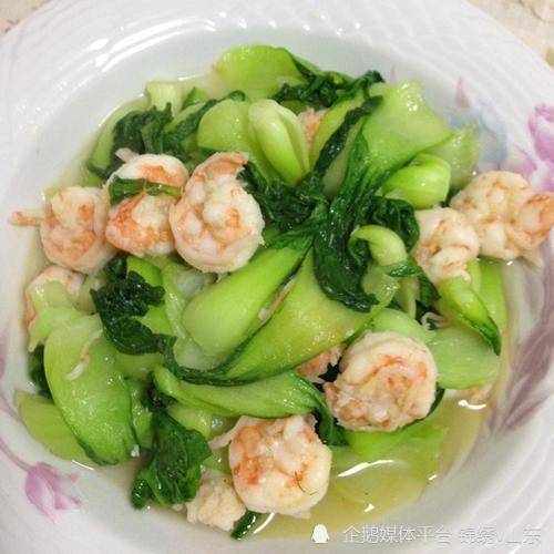 5、油菜炒软后,放入虾仁,加入生抽、蚝油和食盐调味,翻炒均匀入味即可出锅装盘开吃。