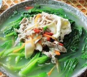 上汤萝卜苗做法:1.萝卜苗洗干净,锅里烧开水,放入几滴油,倒入萝卜苗焯水120-30秒左右,刚熟透即可捞出,放在有点深度的大盘子当中。2.准备三花奶,一点肉丝,一点菇片,一点枸杞,一点红萝卜丝,还有腌制瘦肉剩下的一点蛋清。3.锅里放入1碗半的高汤,煮开,放入肉丝和菇片再次煮开,倒入三花奶,蛋清,放入红萝卜丝,再次烧开。4.最后试味,调入适量的盐,几粒糖,味道合适后放入枸杞即可把汤全部倒在盘中的萝卜苗上,马上可以享用。