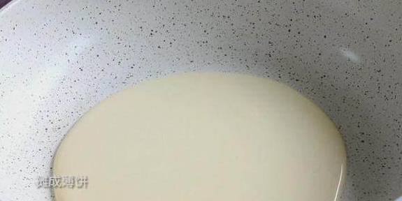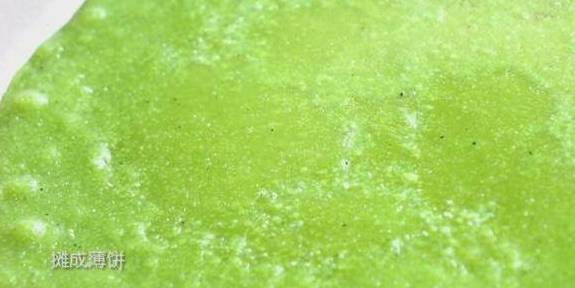 入锅前先搅拌一下面糊,摊成博饼,基本的饼皮就完成啦