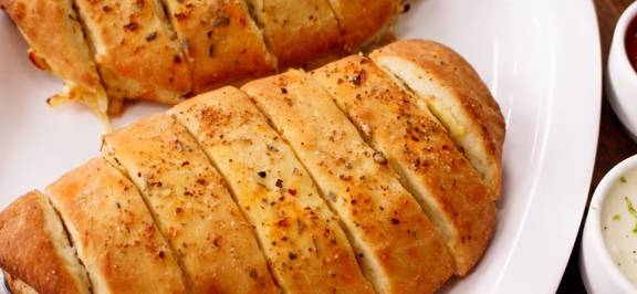 大蒜面包,顾名思义就是一种蒜味香浓的咸面包。把做面包的面团擀开,放入芝士和各种夹心,就成了意大利很出名的饺子披萨了。