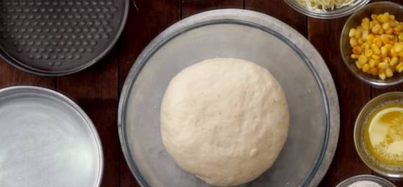 面团揉好之后是光滑而且不粘手的,淋一点植物油在表面,发面到2.5倍大小。