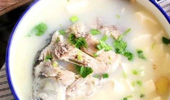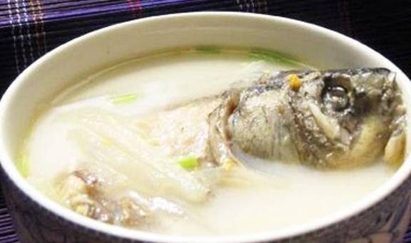 首先把鲫鱼开肚,取出里面的内脏,再用清水多洗几遍,把鱼肚里面的黑膜、血水都处理干净,再把鲫鱼上面的水分都沥干,下面把生姜切成片备用。在锅里倒上油,加上点食盐,转到小火,把鲫鱼放进去煎一下,煎的两面变成金黄,鲫鱼有点发干了,这样就可以出锅了。下面把鲫鱼放在砂锅里面,放上姜片、葱结和适量的清水,盖上盖子开大火煮开,然后转到小火煮1个小时,时间到加上点食盐,再炖3分钟出锅,可以撒上点葱花点缀。