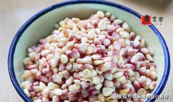 步骤1,准备3根花色糯玉米,用手撕去外皮、玉米须,接着从中间掰断,将玉米粒一一剥落下来。悄悄告诉大家一个小技巧,玉米折断后,从折断的位置开始剥玉米,既省时又省力。剥好的玉米粒倒入清水中淘洗2遍,捞出沥干一下水分。如果你比较懒,那就直接用刀切吧,最省事!