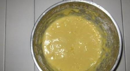 4.加入一个全蛋,拌匀,再逐步加入与蛋清分离后的5个蛋黄,拌匀