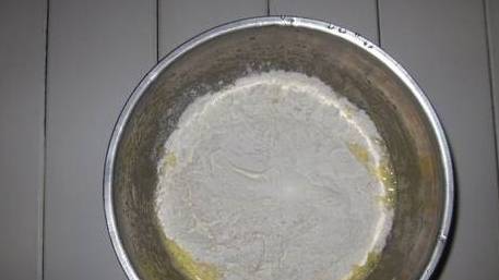 步骤6:在蛋黄液筛入低筋面粉。