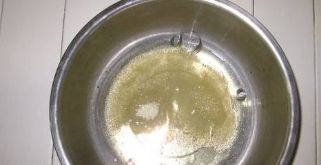 10.电饭煲按下煮饭健预热1分钟后拿出,锅有点热就可以倒入少许油,均匀涂在锅内,以防粘锅