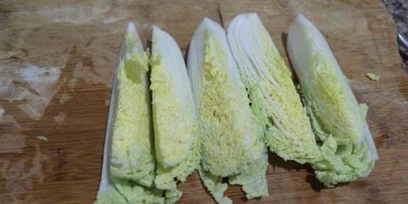 2、将娃娃菜切开,分多少瓣看你自己哈。