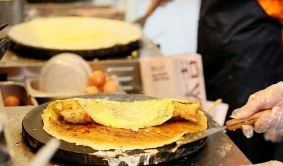 它是由绿豆面薄饼,鸡蛋,还有油条或者薄脆的"馃篦儿"组成,配以面酱、葱末、辣椒酱、韭花作为佐料,口感咸香,如今的煎饼馃子原料已经不仅限于绿豆面摊成的薄饼,还有黄豆面,黑豆面等等多种选择。