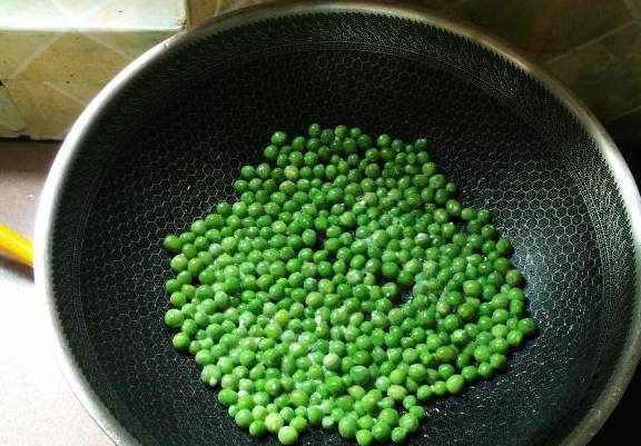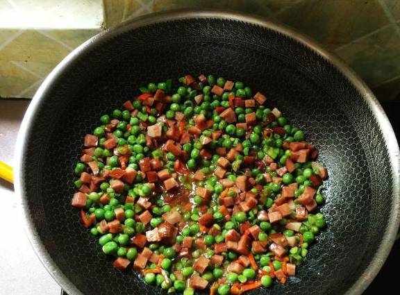 4:锅中倒油,5成热时下豌豆米,不停的翻炒。