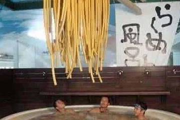 没错,这绝对不是什么惊悚恐怖片里的画面,你看到的这家从外表看起来就是家拉面馆的地方,真的和吃没多大关系,不过这人泡在拉面碗里,一起咕嘟仿佛下一秒就要被煮熟的画面是地地道道的在泡温泉。