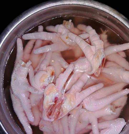 首先我们将买回来的鸡爪清洗干净,我这里用了一斤的鸡爪,然后将鸡爪的指甲都剪掉。接着我们再将鸡爪放入锅中,加入冷水,加入姜片,一勺食盐,再倒入适量的料酒,接着我们再盖上锅盖,给鸡爪焯水!
