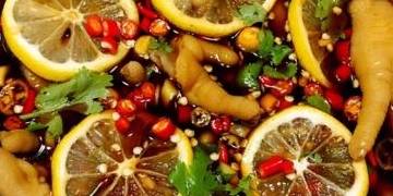 待鸡爪放凉后,我们将它倒入可以密封的容器里,接着我们往容器里倒入姜蒜末,接着我们再倒入200ml的生抽,200ml的白醋,接着我们再倒入适量的泡椒水还有泡椒,这里根据个人口味酌情放。喜欢吃辣的朋友可以多放一点,最后我们再放入两个切好的小米辣,两片柠檬,开胃的泡椒凤爪就做好了,再将它放入冰箱冷藏8小时,就可以开吃了!