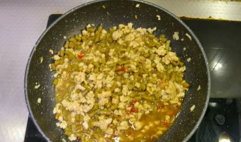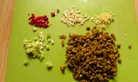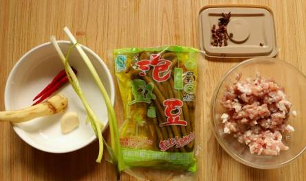 配料:酸豆角,香葱,生姜,八角,花雕酒,温开水,肉末,小米辣,蒜瓣,花椒,食用油等