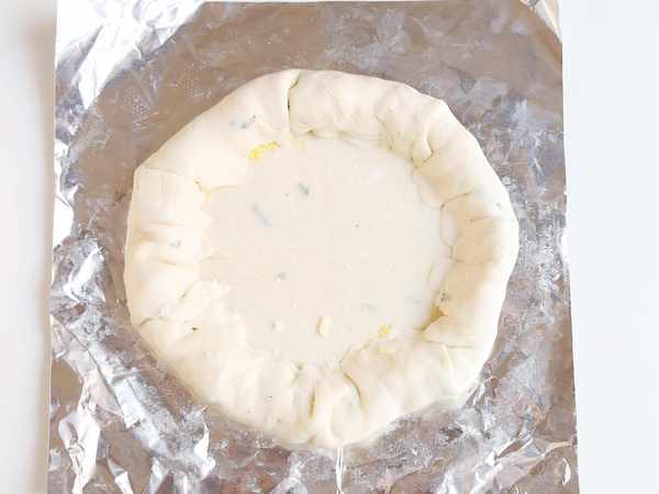 2.提前解冻煎饼,并用磨碎的奶酪包裹它们