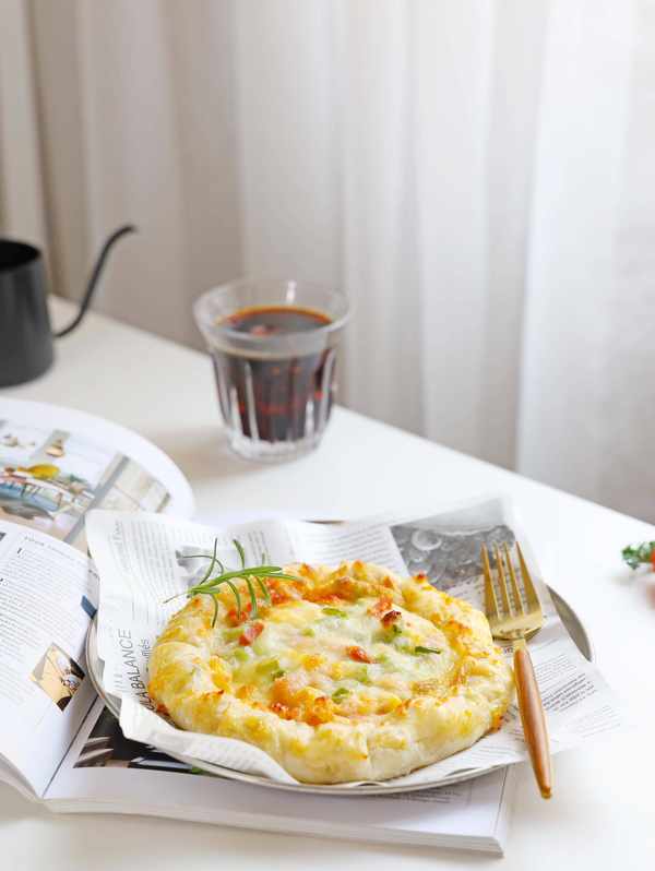从结皮到洒水烘烤不到20分钟,而且连碗都不用洗。是不是超级方便?手指派披萨烤好了。饼底质地略脆,层次丰富。好吃到停不下来。喜欢吃披萨,但讨厌做披萨饼皮的麻烦?现在试试这个手指派披萨吧!