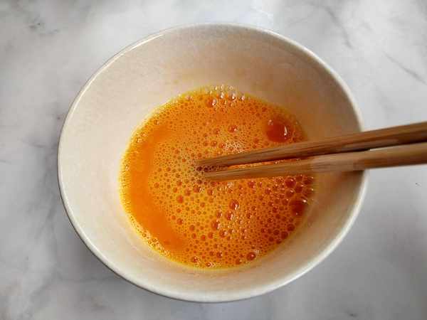 第三步:将鸡蛋打入碗中,搅拌均匀。