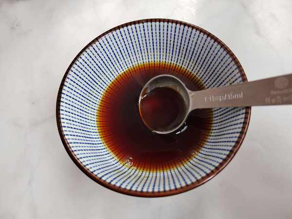 第四步:将盐、糖、生抽、蚝油、料酒放入碗中,倒入少许水,搅拌均匀,制成酱汁。