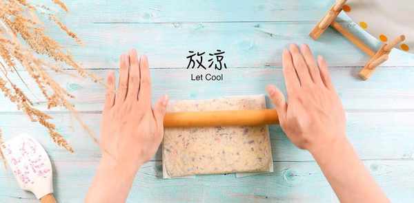 铺上烘焙纸后,整形就很简单了!把它包起来,用你能拿到的任何工具,把它捣成合适的厚度,然后让它冷却。