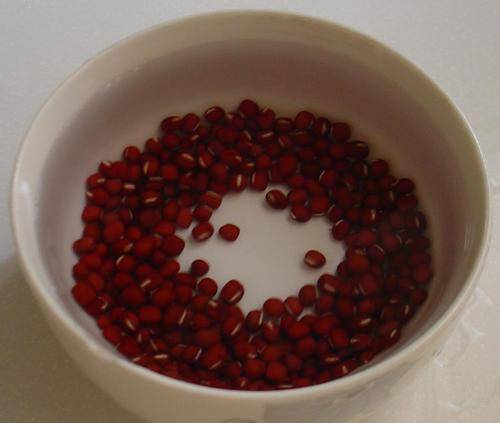 第一步制作:红豆用清水洗净,去除表面的污垢,红豆用清水泡几个小时(也可以泡一夜,这样红豆更容易熟).