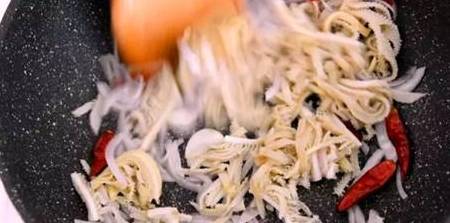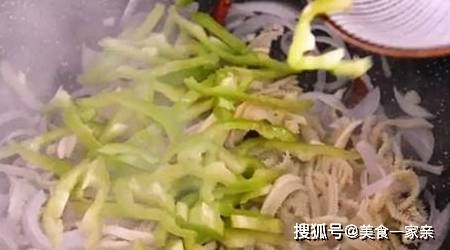 放入牛肚丝翻炒。