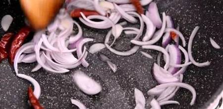 放入洋葱炒断生。