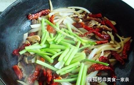 放入毛芹菜快速翻炒。