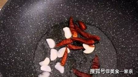 热锅凉油,放入大蒜、干辣椒爆香。