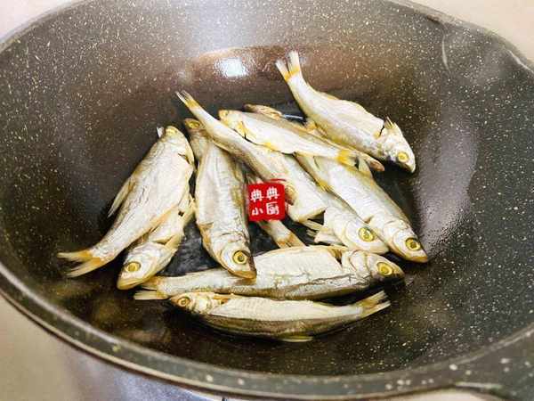 这种小咸鱼需要提前泡好,然后再冲洗干净,最后沥干水分。起油锅,同姜蒜一起下锅,慢慢煎至两面金黄为止。