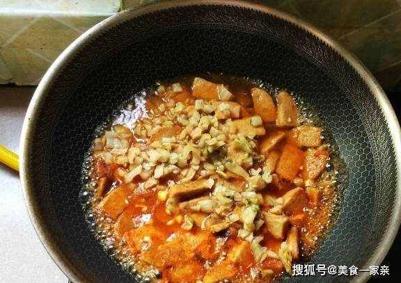 5:中小火煎至两面焦黄时,下大蒜末,炒出香味。