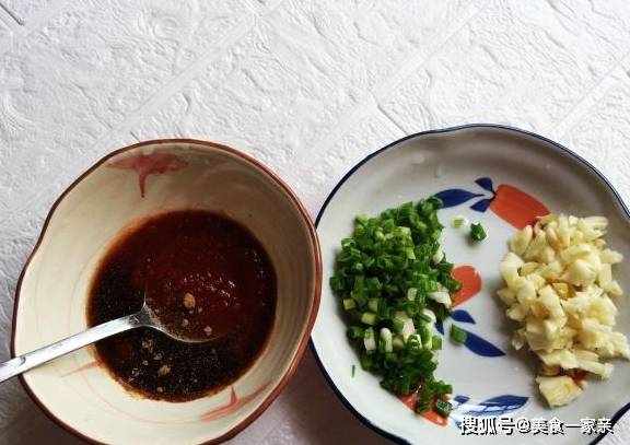 3:大蒜,香葱切碎末;取一小碗,加入辣椒酱,生抽,十三香和适量水,兑成碗汁。