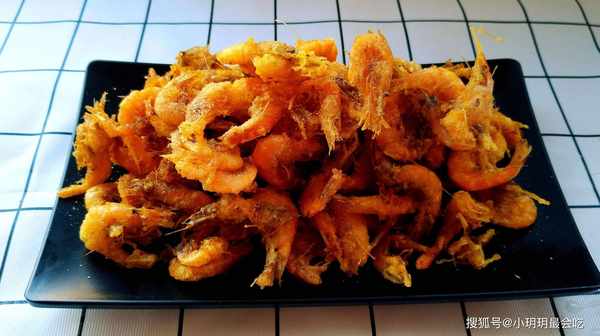 4、由于小河虾一遇到高温就会变色,因此炸制的时候要观察一下,避免炸得太嫩或者炸得太老。