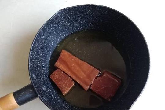 1.红糖块和160克清水倒入锅中,用小火煮至糖融化