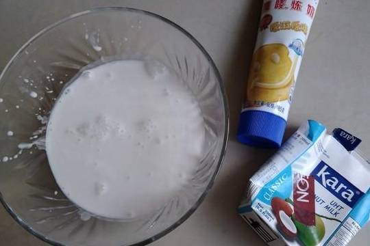 马蹄粉200克、椰浆200克、红糖130克、炼奶30克、水460克