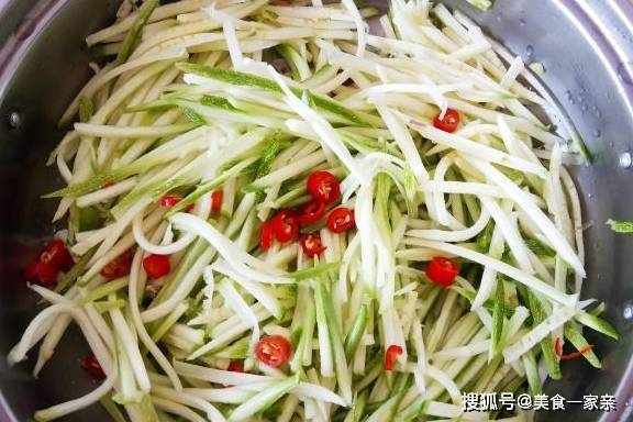 第一步:白瓜洗净去皮,擦丝加入适量的精盐,腌制2分钟,放入盆中备用。