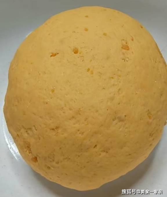 把一个大点的红薯清洗干净,然后去皮,切成薄片,放入蒸锅,蒸15分钟,蒸熟。然后压成泥,趁热加入一勺白糖,搅拌融化,晾至温热加入3克酵母粉,再加入大约300克普通面粉,搅拌成絮状,和成光滑面团,醒发至2倍大。