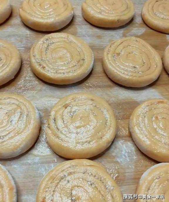 发好的面揉面排气,然后擀成大薄饼,饼上面刷上一层植物油,均匀的撒上一层炒熟的白芝麻,然后把饼从一端卷起,卷紧实,切成等分的小挤子,把每个小挤子整理成圆形,接头处掖在下面。全部做好后盖上保鲜膜松弛十分钟。