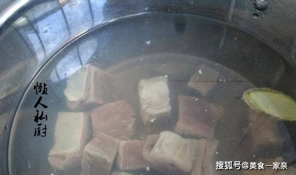 2、冷水下锅焯水,加料酒去腥,使血水在升温过程中全部渗出;