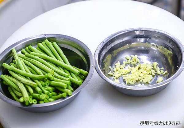 1.准备长豆角一把,切成6厘米左右的长段。切点蒜末、红椒粒备用。